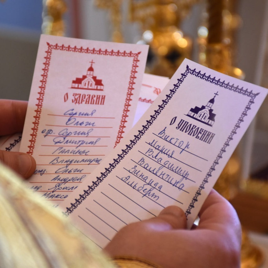 Дорогие братия и сестры! Здесь Вы можете подать записки о здравии и об упокоении близких. В записках указываются только имена крещеных в Православной церкви.